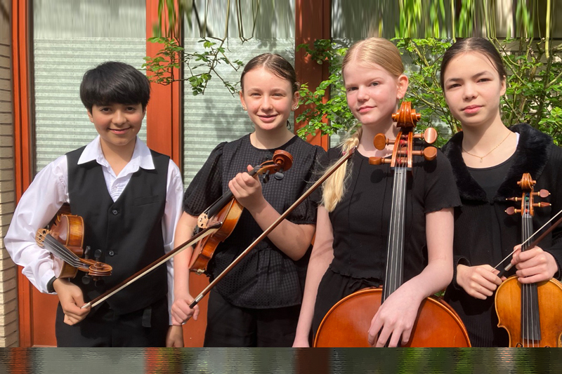 Das „Apollo Quartett“ der IJK, Hamburg mit Ida Maria Pujanek, Violine, Sophie Hikari Hoffmann, Violine, Pablo Castillo-Tobón, Viola und Matilda Brunke, Violoncello in der Laeiszhalle, Kleiner Saal, am 19.04.2024.