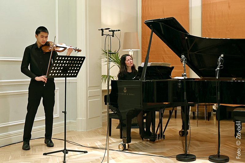 Der IJK Stipendiat Nhat-Minh Duong, Violine und die IJK Dozentin Aglika Angelova, Klavier, in der Tesdorpfstraße 13 am 16.02.2024.