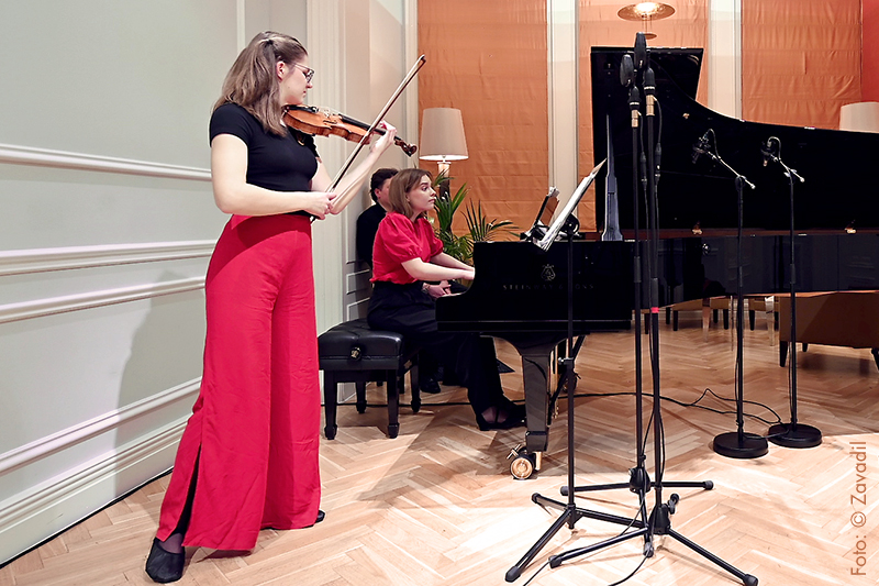 Die IJK Stipendiatin Magdalena Mahnke, Violine und Sophie Bergmann, Klavier in der Tesdorpfstraße 13 am 14.02.2025.